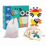 Ta wysokiej jakości drewniana układanka zapewni dzieciom godziny twórczej i wartościowej zabawy. Dzięki dołączonym kartom dzieci mogą układać różne motywy zwierzątek, uczyć się kolorów i kształtów oraz rozwijać koordynację ręka–oko. Praktyczny materiałowy woreczek ułatwia przechowywanie i przenoszenie.