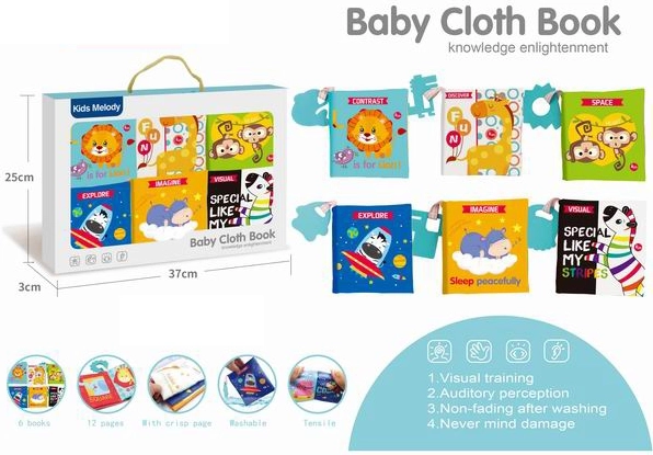 Odkryj miękkie materiałowe książeczki dla maluszków od 6 miesięcy, które wspierają rozwój sensoryczny i pierwszą naukę. Każda książeczka ma 12 kolorowych stron ze zwierzątkami i prostymi podpisami po angielsku, praktyczną pętlę do zawieszenia z gryzakiem i idealnie sprawdza się w domu oraz w podróży.