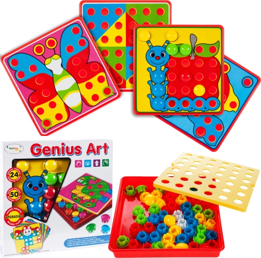 Odkryj zabawną grę edukacyjną, w której dzieci układają kolorowe guziki na szablonach o wymiarach 23,4 × 23,4 cm. Mozaika rozwija małą motorykę, koordynację oko–ręka, rozpoznawanie kolorów oraz kreatywność. Prosta zasada i wyraziste kolory gwarantują długie godziny zabawy bez ekranów.