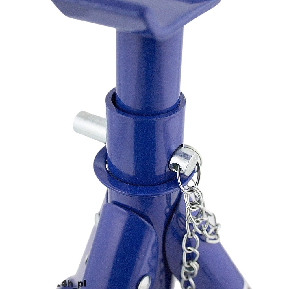 Wysokość ustawisz skokowo i zablokujesz solidnym kołkiem na łańcuszku. Proste, niezawodne i trwałe rozwiązanie do bezpiecznej pracy pod pojazdem.