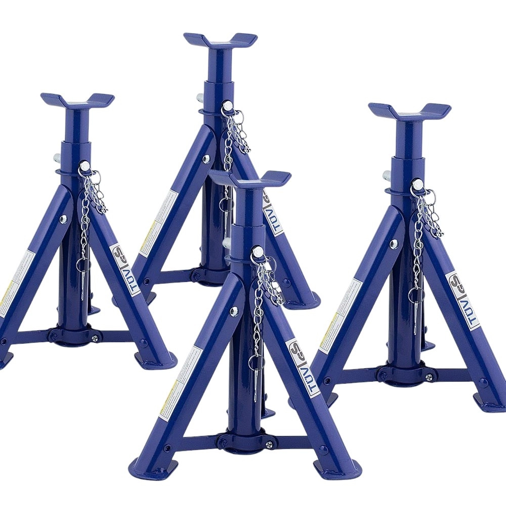 Zestaw zawiera 4 sztuki, więc łatwo i bezpiecznie podeprzesz cały pojazd. Certyfikacja TÜV potwierdza spełnienie europejskich standardów bezpieczeństwa, co czyni go niezawodnym wyborem do zastosowań profesjonalnych i hobbystycznych.