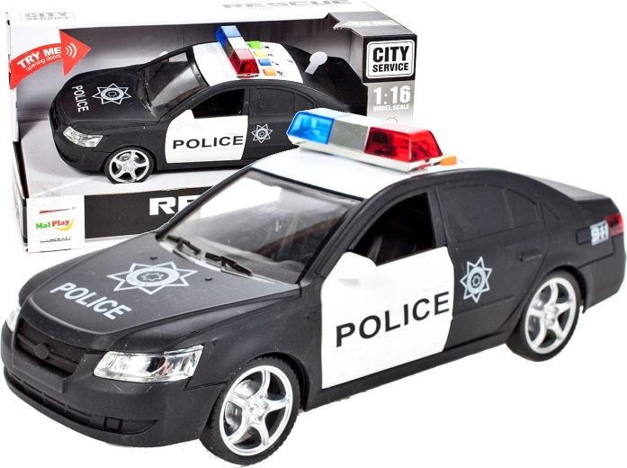Wejdź do świata policyjnych akcji z szczegółowo wykonanym modelem policyjnego auta w skali 1:16. Zabawa dzięki kilku realistycznym efektom dźwiękowym jest jeszcze ciekawsza – od klaksonu, przez syrenę, po dźwięk zamykania i cofania. Idealny do zabawy w domu i jako uzupełnienie kolekcji.