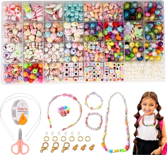 Odkryj zabawę i rozwój kreatywności z tym zestawem do tworzenia biżuterii. Zawiera 32 rodzaje kolorowych koralików oraz przezroczystą żyłkę do łatwego nawlekania. Idealny dla dzieci od 6 lat, wspiera małą motorykę, wyobraźnię i twórczość.