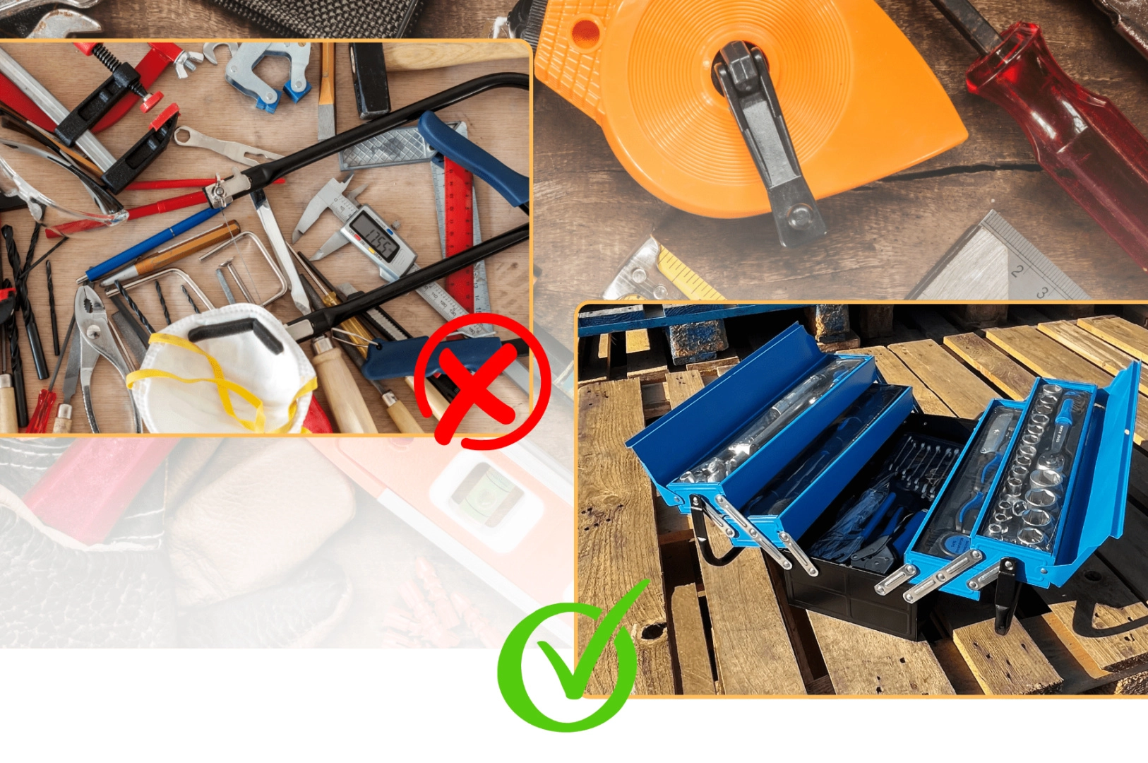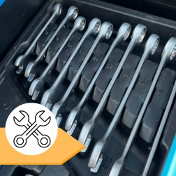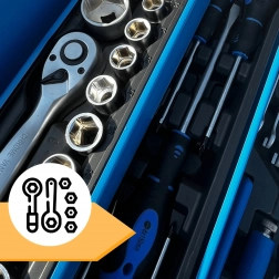Wielopoziomowa rozkładana walizka z wkładkami utrzymuje wszystkie elementy przejrzyście na swoim miejscu. Szybko znajdziesz właściwą nasadkę, klucz czy śrubokręt.