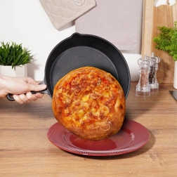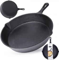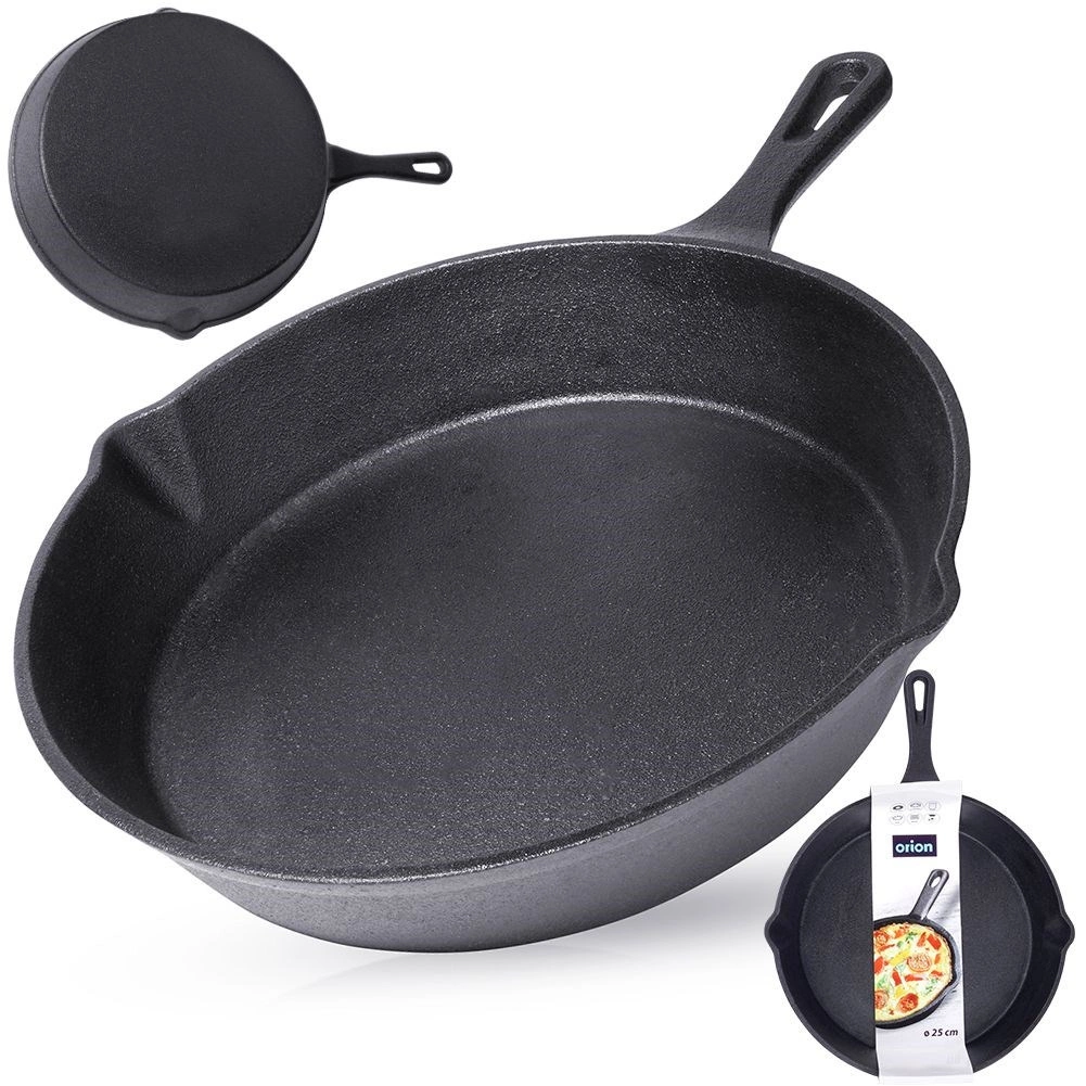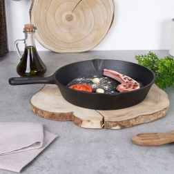 Solidna żeliwna patelnia o średnicy 25 cm jest idealna do przygotowywania mięsa, warzyw, ziemniaków i pieczywa. Masywne korpus żeliwny szybko i równomiernie się nagrzewa oraz utrzymuje stabilną temperaturę, dzięki czemu dania dłużej pozostają ciepłe i dają perfekcyjne rezultaty przy searowaniu, smażeniu i pieczeniu.
