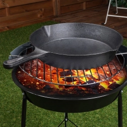Dzięki kompatybilności ze wszystkimi typami płyt grzewczych – gazową, elektryczną, ceramiczną, halogenową i indukcyjną – oraz możliwości użycia w piekarniku czy bezpośrednio nad ogniem, patelnia świetnie sprawdzi się w kuchni i na zewnątrz. Dwie zintegrowane wylewki umożliwiają wygodne przelewanie sosów i tłuszczów bez bałaganu.