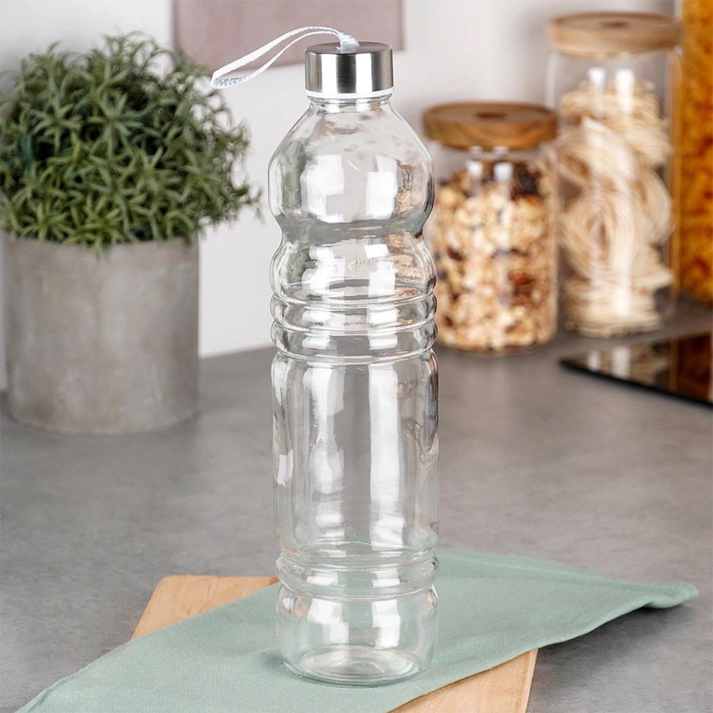 Stylowa i wytrzymała szklana butelka na wodę o pojemności 1,1 litra to niezawodny towarzysz na cały dzień. Dzięki wysokiej jakości szkłu i metalowej zakrętce z silikonową uszczelką jest pewnie szczelna, więc możesz bez obaw nosić ją w torbie lub plecaku. Przezroczyste korpus umożliwia łatwą kontrolę zawartości, a butelka świetnie nadaje się do owocowych infuzji, domowych lemoniad i świeżych soków.