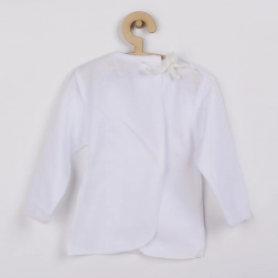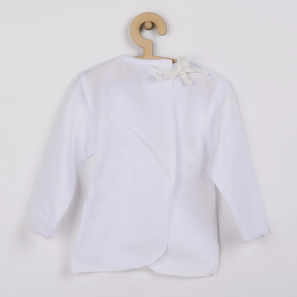 Praktyczne wiązanie z tyłu na troczki umożliwia szybkie i delikatne ubieranie bez ucisku guzików czy zamków na brzuszku. Koszulka to świetny wybór do wyprawki, do spania i pod sweterek.