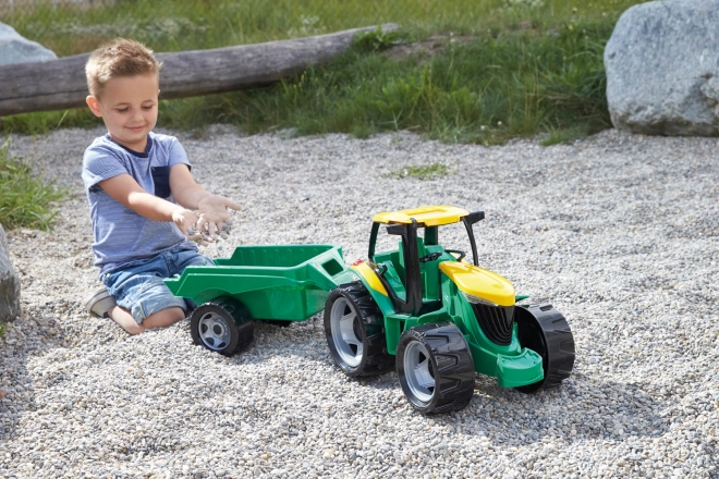 Idealny do kreatywnej zabawy na świeżym powietrzu – dzieci spędzą godziny na zabawie traktorem i przyczepą.