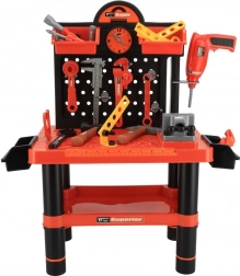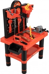 Odkryj zabawny dziecięcy warsztat z bogatym zestawem narzędzi, który zachwyci każdego małego majsterkowicza. Praktyczny stół roboczy z otworami na śruby i imadłem, panelem do zawieszania oraz przegródkami na akcesoria wspiera małą motorykę, kreatywność i koncentrację. W zestawie znajduje się także zabawkowa wiertarka na baterie (brak w zestawie), młotki, klucze, śrubokręt i inne dodatki do realistycznej zabawy.