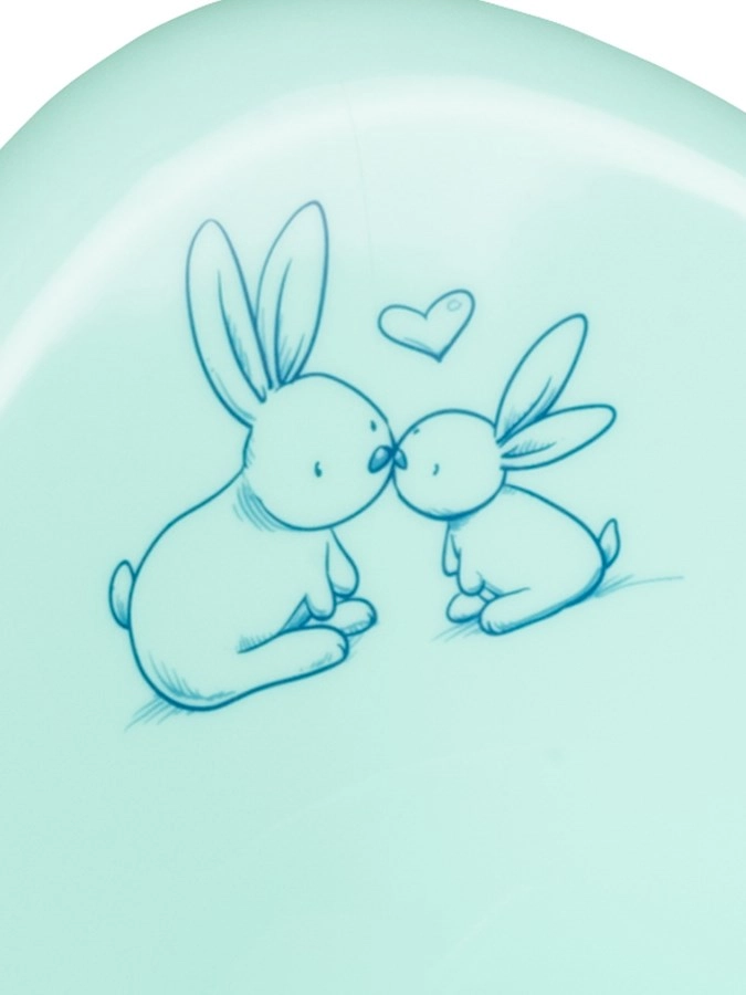 Praktyczny i uroczy dziecięcy nocnik Bunny w miętowym kolorze z motywem króliczków oferuje wygodne siedzenie, wysokie oparcie pleców oraz szerokie siedzisko. Jest lekki i kompaktowy, idealny do codziennego użytku i w podróży. Wesoły motyw króliczków zainteresuje dzieci i umili im naukę korzystania z nocnika.