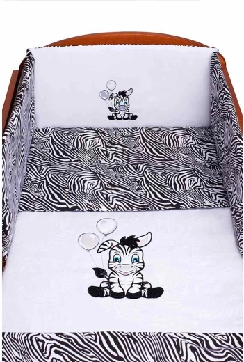 Zapewnij maluszkowi komfort i spokojny sen z zestawem pościeli New Baby Zebra. Wesoły motyw zebry i wyraziste czarno‑białe pasy nadadzą pokojowi dziecka radosny wygląd, a delikatna 100% bawełna zapewni przyjemny dotyk i przewiewność przez całą noc.