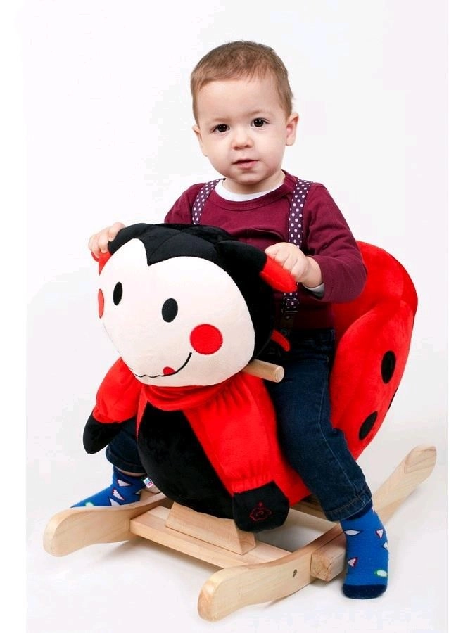 Bujana zabawka PlayTo w kształcie biedronki łączy bezpieczną konstrukcję z mięciutkim pluszem i ciekawymi funkcjami. Dzięki wygodnemu siedzisku z oparciem oraz solidnej drewnianej podstawie dzieci cieszą się komfortowym i płynnym bujaniem. Naciśnięcie łapki uruchamia melodię, która dodatkowo pobudza ciekawość i radość z zabawy.