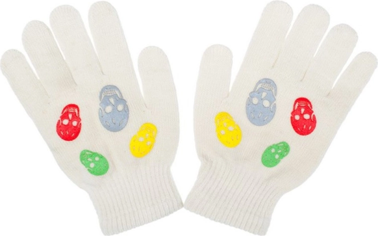 Ciepłe i miękkie rękawiczki dla dzieci w nowoczesnym kolorze cappuccino są idealne na zimę i jesień. Dzianinowa struktura zapewnia komfort noszenia, a elastyczny ściągacz utrzymuje rękawiczki pewnie na miejscu. Wesołe kolorowe czaszki dodają oryginalnego wyglądu, który dzieci uwielbiają.