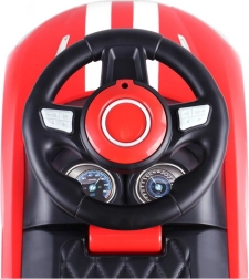 Jeździk wyposażono w interaktywną kierownicę do zmiany kierunku jazdy, skrętne przednie koła dla łatwego manewrowania oraz zabezpieczenie przed przewróceniem dla większego bezpieczeństwa. Praktyczny schowek bagażowy pomieści ulubione zabawki i akcesoria na drogę.