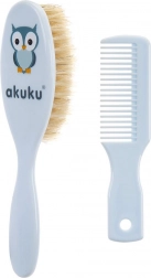Delikatny zestaw do codziennej pielęgnacji dziecięcych włosków – szczotka z naturalnym włosiem i dopasowany grzebień AKUKU w kolorze niebieskim. Delikatnie rozczesuje i masuje wrażliwą skórę główki, jest bez BPA i odpowiedni od urodzenia.