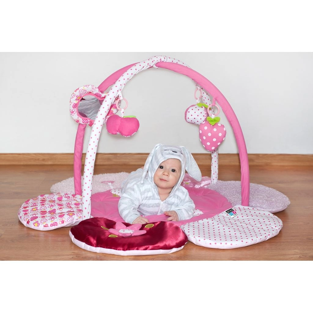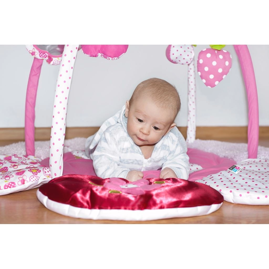 Ta stylowa mata do zabawy w kształcie kwiatka tworzy dla maluszka przytulny i bezpieczny kącik do zabawy i odpoczynku. Miękkie wypełnienie zapewnia komfort na brzuszku i na plecach, a odczepiany pałąk z uroczymi zabawkami zachęca do podnoszenia główki, rozciągania i pierwszych odkryć.