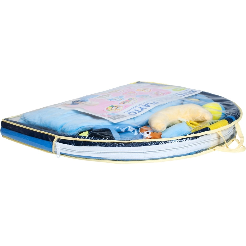 Mata edukacyjna PlayTo śpiący miś w niebieskim kolorze jest idealna do codziennej zabawy i odpoczynku. Dzięki miękkiemu materiałowi jest przyjemna w dotyku, zapewnia wsparcie podczas leżenia na brzuszku i na plecach oraz wspiera naturalny rozwój motoryczny. W zintegrowanym księżycu ukryty jest moduł grający, który po naciśnięciu odtwarza melodie i stymuluje słuch.