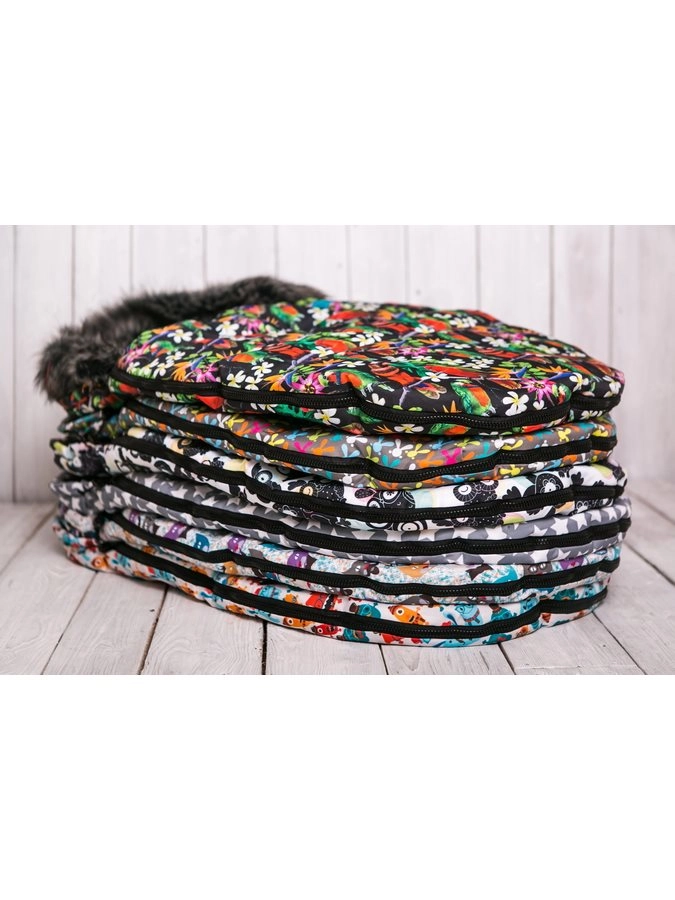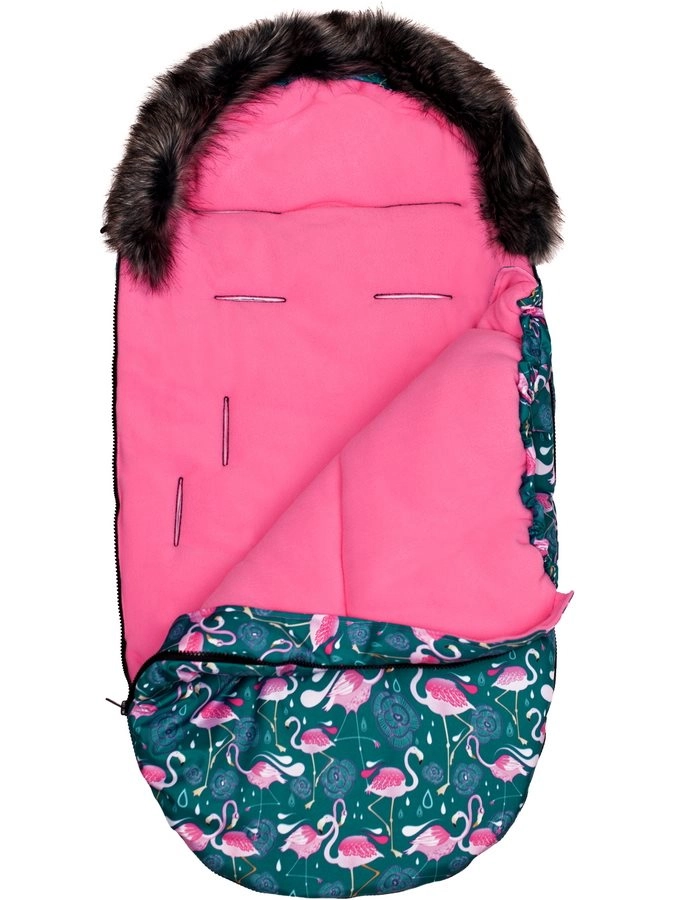 Praktyczne wykonanie z zamkiem na całym obwodzie umożliwia szybkie włożenie i wyjęcie dziecka oraz łatwe wietrzenie. Otwory na 5‑punktowe pasy bezpieczeństwa zapewniają kompatybilność z wózkami i fotelikami samochodowymi, a tylna kieszeń pomaga stabilnie zamocować śpiworek w wózku lub na sankach. Uniwersalne wymiary ok. 98 × 53 cm pasują do większości spacerówek i wózków głębokich.