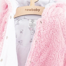 Szukasz zimowego płaszczyka, który jest nie tylko uroczy, ale i funkcjonalny? Ten niemowlęcy płaszczyk Nice Bear w różowym kolorze łączy ciepło, wygodę i delikatność dla wrażliwej dziecięcej skóry. Kaptur z uszkami dodaje modelowi figlarnego charakteru, a bawełniana podszewka w misie na całej powierzchni zwiększa komfort noszenia.