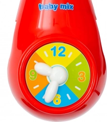 Figurki można łatwo zdemontować i używać jako grzechotek (wysokość ok. 10 cm). Z boku znajduje się atrakcyjny kolorowy cyferblat, który zachęca dzieci do dotykania i obracania wskazówek. Wszystkie funkcje – melodie, rotacja, projekcja – można włączać niezależnie, aby stworzyć idealną atmosferę dla maluszka.