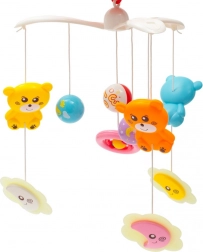 Karuzela nad łóżeczko BABY MIX z projektorem zapewni dziecku spokojne zasypianie i zabawę w ciągu dnia. Projektor wyświetla zmieniające się gwiazdki i służy jako nocne światło. Pozytywka odtwarza 3 melodie i dźwięki natury z możliwością regulacji głośności. Karuzela delikatnie się obraca, wspierając koordynację wzrokowo-ruchową.