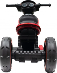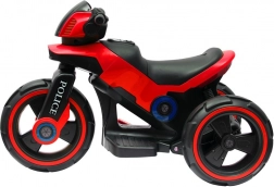 Stylowy dziecięcy motocykl elektryczny BABY MIX POLICE w kolorze czerwonym zapewnia bezpieczną zabawę dla dzieci od 3 do 7 lat. Oferuje mocne podwójne silniki 2×6V/24W, wygodne szerokie siedzisko, duże plastikowe koła oraz oświetlenie LED. Dzięki złączom USB/MP3 mali kierowcy mogą słuchać ulubionej muzyki, jazda do przodu/tyłu sterowana jest przyciskiem, a nożny pedał zapewnia płynny start i hamowanie po jego zwolnieniu.