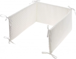Wyściełany ochraniacz z wiązaniami na obwodzie chroni maluszka przed uderzeniami i przeciągami, a także pewnie trzyma się na miejscu.