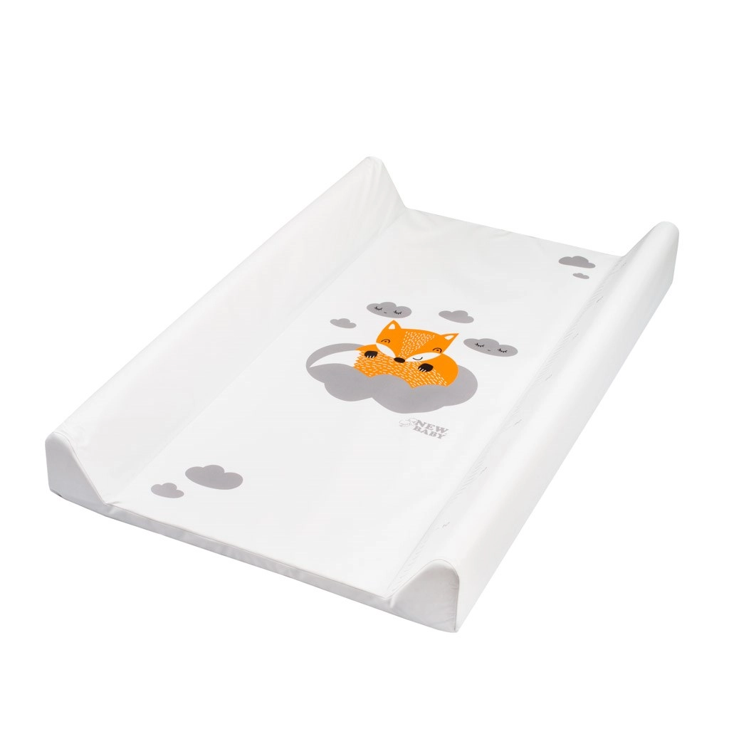 Wygodna i funkcjonalna mata do przewijania New Baby z uroczym motywem liska i chmurek to idealny pomocnik do codziennej pielęgnacji maluszka. Dzięki podwyższonym bokom zapewnia większą pewność podczas przewijania, a miękkie wypełnienie bez twardego podkładu jest delikatne dla wrażliwej skóry dziecka.