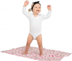 Kocyk jest odpowiedni od urodzenia, a także dla starszych dzieci – świetnie sprawdzi się do wózka, łóżeczka, fotelika samochodowego lub jako mięciutka mata do zabawy. Materiały są trwałe kolorystycznie i niepodrażniające, więc pokochasz go za łatwą pielęgnację i długą trwałość.