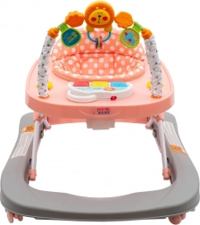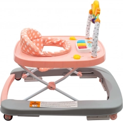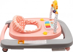 Odkryj stabilny i wygodny chodzik, który ułatwia dzieciom naukę chodzenia, a rodzicom daje spokój dzięki przemyślanym rozwiązaniom bezpieczeństwa. Interaktywne pianinko z 3 klawiszami (wyjmowane) oraz zabawki na pałąku z obrotowymi elementami i koralikami wspierają małą motorykę, wzrok i słuch.