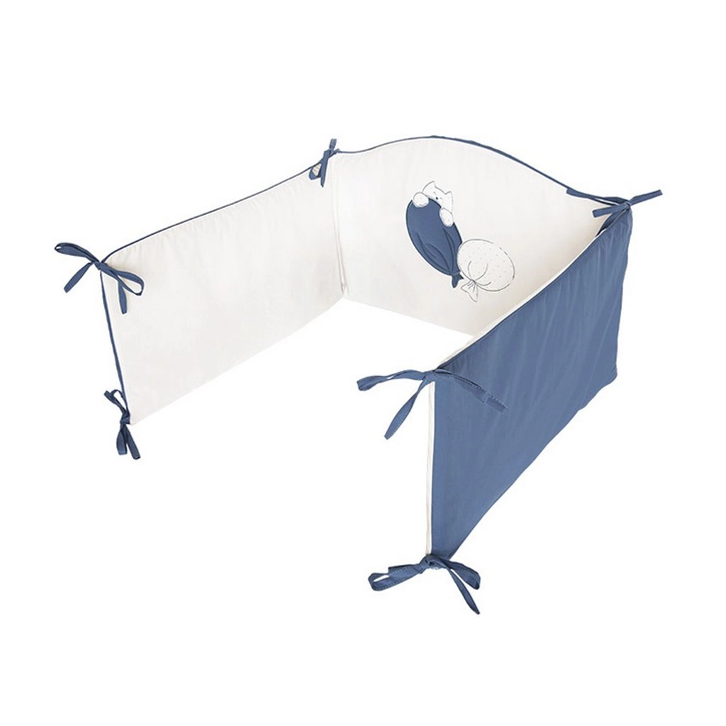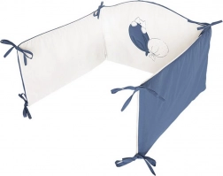 Praktyczne wykonanie z bezpiecznym zamkiem bez luźno zwisającej końcówki chroni przed przypadkowym zerwaniem. Ochraniacz z wypełnieniem i wiązaniem na obwodzie zwiększa wygodę i bezpieczeństwo w łóżeczku.