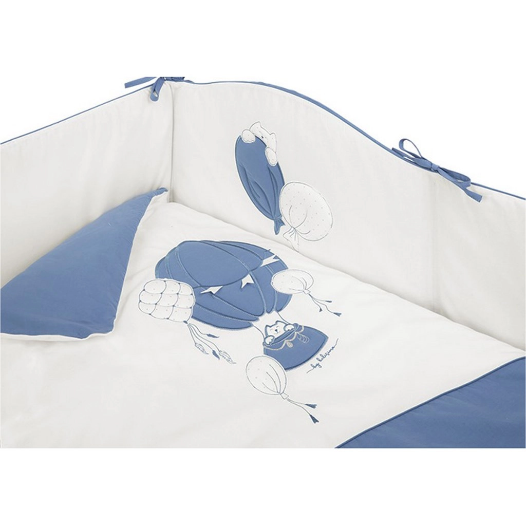 Uroczy 3‑częściowy zestaw pościeli do łóżeczka z miękkiej 100% bawełny z motywem baloników i koronki zapewnia delikatność, bezpieczeństwo i spokojny sen. Zawiera poszwę na kołderkę 90 × 120 cm, poszewkę na poduszkę 40 × 60 cm oraz ochraniacz ok. 180 cm ze sznureczkami do łatwego mocowania.