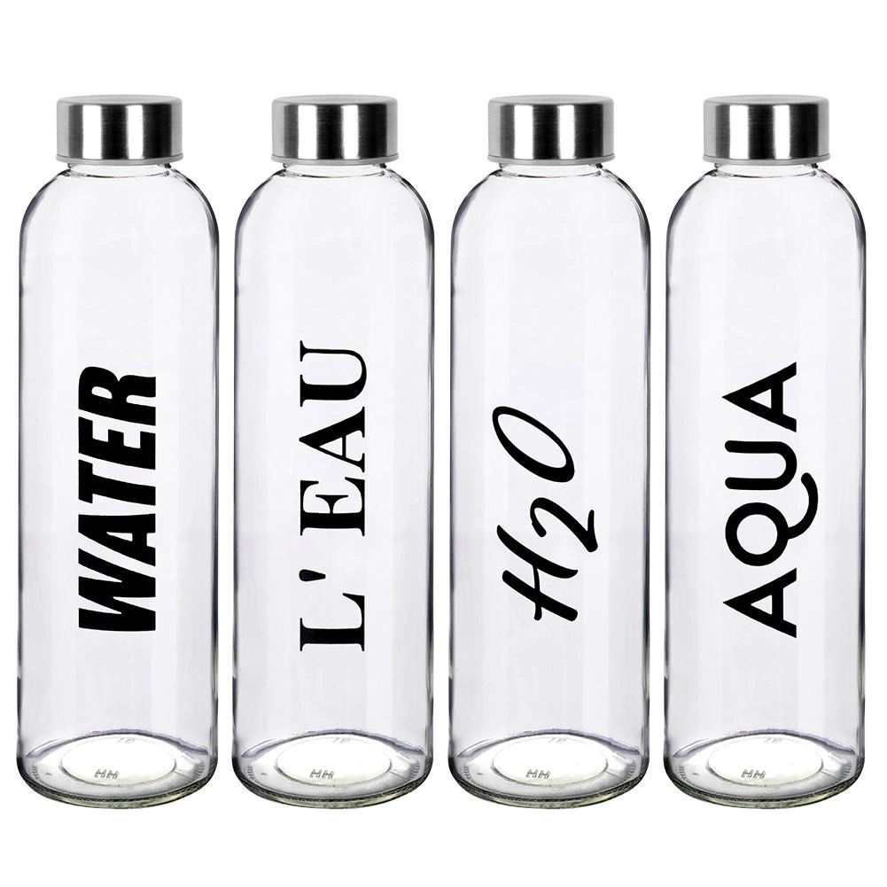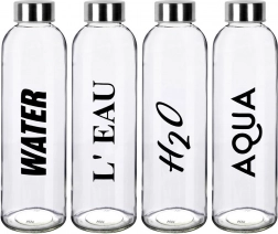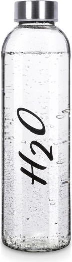 Elegancka szklana butelka o pojemności 700 ml z metalową, zakręcaną nakrętką i silikonową uszczelką dla doskonałej szczelności. Idealna na wodę, lemoniadę, soki czy smoothie. Wytrzymałe, przezroczyste szkło z efektownym czarnym napisem i ponadczasowym designem do codziennego nawadniania w domu, w pracy i w podróży.