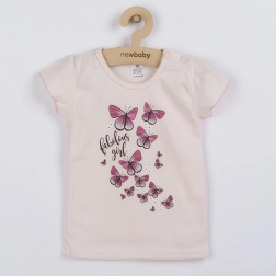 Komplecik New Baby Butterflies został zaprojektowany tak, by połączyć subtelny wygląd z maksymalnym komfortem dla dziecka. Koszulkę z krótkimi, marszczonymi rękawkami zdobi wesoły nadruk motylków, a dzięki zapięciu na napy na ramieniu łatwo zakłada się ją przez główkę. Spódniczka w szarym melanżu ma urokliwą falbankę, która dodaje stylu, oraz szerszy elastyczny pas dla wygody przez cały dzień.