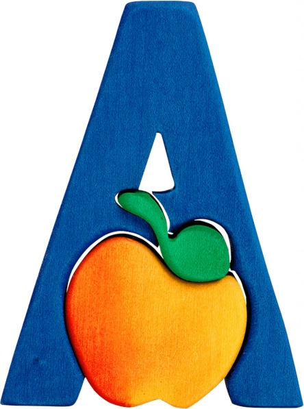 Drewniana wkładanka litera A z motywem jabłka to idealna pomoc do pierwszego kontaktu z literkami. Elementy dokładnie do siebie pasują, co wspiera koncentrację i cierpliwość. Powierzchnia jest wykończona farbami bezpiecznymi dla dzieci, a produkt spełnia normy bezpieczeństwa UE.