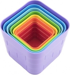 Siedem kwadratowych klocków w żywych barwach łatwo układa się w stabilną wieżę i wspiera koordynację oraz cierpliwość.