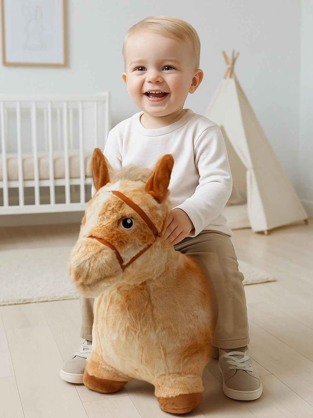 Pluszowy skaczący konik PlayTo to idealne hopsadło dla dzieci, które kochają ruch i zwierzątka. Miękki, przyjemny w dotyku plusz nie ślizga się i zapewnia wygodne siedzenie oraz pewny chwyt za uszy. Wbudowany moduł dźwiękowy między uszami po naciśnięciu wydaje realistyczny dźwięk konika, który uatrakcyjnia zabawę i rozwija wyobraźnię.