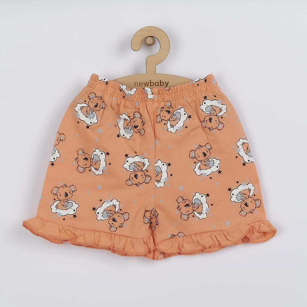 Letnia piżamka New Baby Dream w delikatnym łososiowym odcieniu została zaprojektowana z myślą o maksymalnej wygodzie i subtelnym wyglądzie. Leciutką koszulkę z falbankami i uroczym nadrukiem misia na chmurce dopełniają szorty z nadrukiem w misie na całej powierzchni oraz falbankami przy nogawkach. Dzięki 100% bawełnie piżamka jest przewiewna, delikatna dla wrażliwej dziecięcej skóry i świetnie sprawdzi się także jako letnie domowe czy codzienne ubranko.