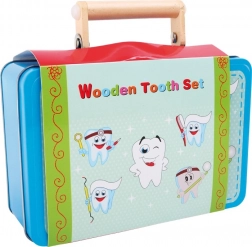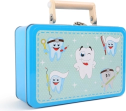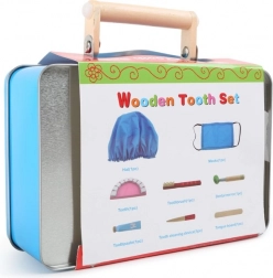 Dentystyczny zestaw lekarski dla małych dzieci – drewniany zestaw w metalowym pudełku
