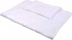 W zestawie znajduje się miękka kołderka i poduszka z równomiernym wypełnieniem. Hipoalergiczne włókna są oddychające i odpowiednie dla wrażliwych dzieci.