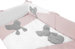 Kompletny zestaw do łóżeczka w spójnym wzornictwie z subtelnymi motywami myszek pięknie ociepli pokój dziecięcy i zapewni maluszkowi bezpieczne, wygodne otoczenie. Miękkie materiały, staranne wykonanie i przemyślane detale gwarantują przyjemny sen i łatwą pielęgnację.