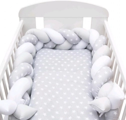 Gęsto wypełniony pleciony warkocz amortyzuje uderzenia, zapobiega przekładaniu rączek między szczebelkami i pomaga stworzyć spokojną, przytulną strefę do snu.