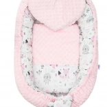 Gniazdko jest dwustronne i praktyczne do codziennego użytku – w łóżeczku, wózku, na sofie i na podłodze. W zestawie znajduje się poduszeczka w kształcie serca oraz kołderka ozdobiona serduszkiem do delikatnego okrycia i komfortowego snu.