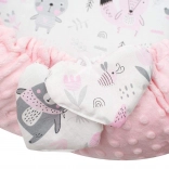 W zestawie poduszeczka w kształcie serca i delikatna kołderka. Minky z wypustkami wspiera sensomotorykę i zapewnia dodatkowy komfort.
