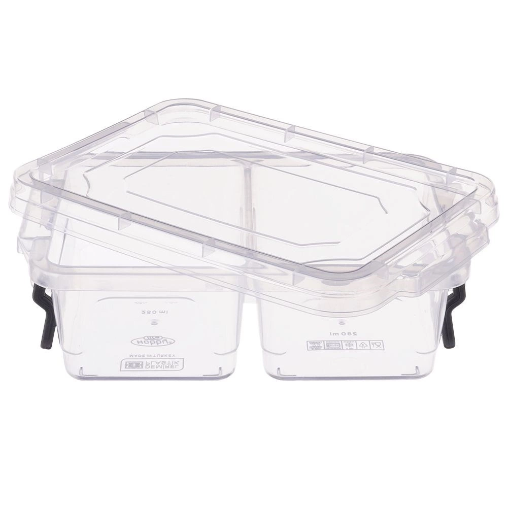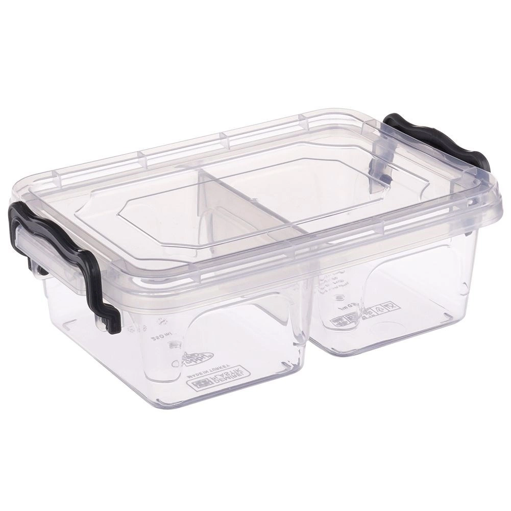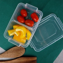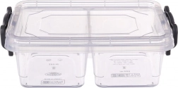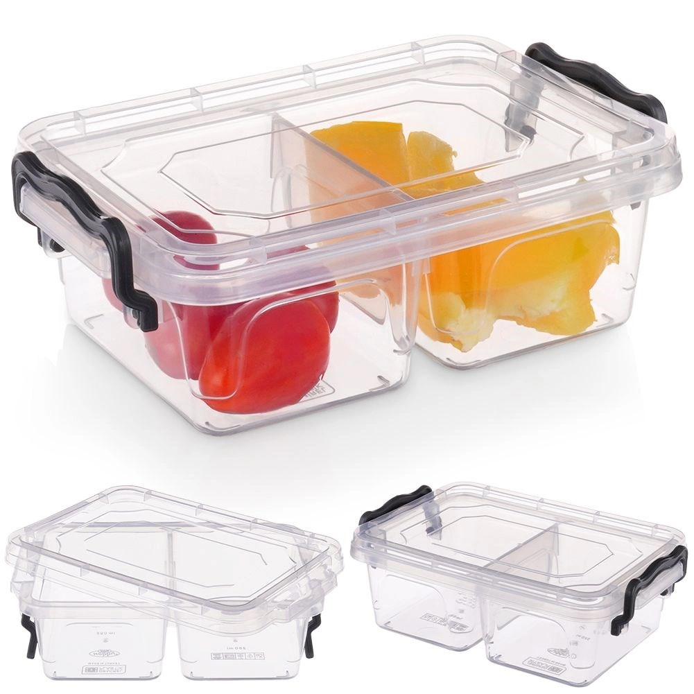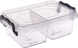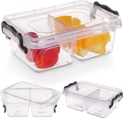 Praktyczny i wytrzymały pojemnik na żywność o pojemności 500 ml z podwójną przegrodą i bezpiecznymi klipsami zamykającymi. Odpowiedni do lodówki i zamrażarki, można myć w zmywarce oraz podgrzewać w kuchence mikrofalowej (bez pokrywki). Idealny jako lunch box do pracy, szkoły i w podróży.