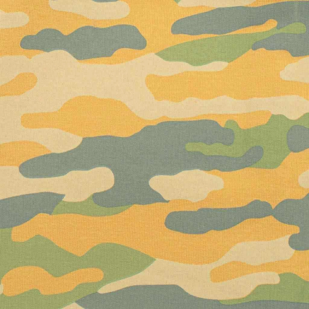 Szerszy brzeg sprawia, że czapeczka dobrze się trzyma, a jednocześnie nie uciska główki. Całopowierzchniowy wzór moro w musztardowym kolorze nadaje stylowi dziecka nowoczesny wygląd i łatwo dopasujesz go do innych elementów garderoby.