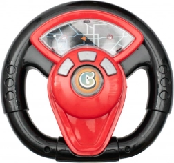 - Interaktywna kierownica: przyciski z melodiami (zasilanie 2× AA, brak w opakowaniu) dla jeszcze fajniejszej zabawy.
