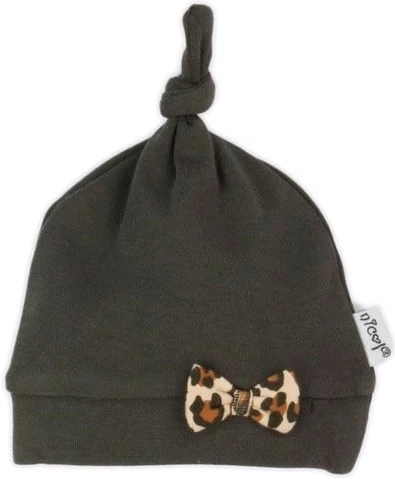 Stylowa czapeczka dziewczęca Nicol Mia w ciemnobrązowym kolorze ze słodkim supełkiem i subtelną kokardką. Dzięki szerokiemu ściągaczowi nie uciska główki i jest idealna jako praktyczny i designerski dodatek. Wykonana z 100% bawełny dla maksymalnego komfortu maluszka.