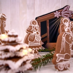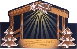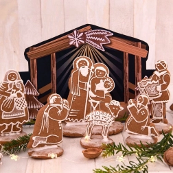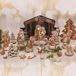 W komplecie znajduje się kolorowa scenografia stajenki, dzięki której Twoja domowa piernikowa lub ciasteczkowa szopka betlejemska będzie się pięknie prezentować.